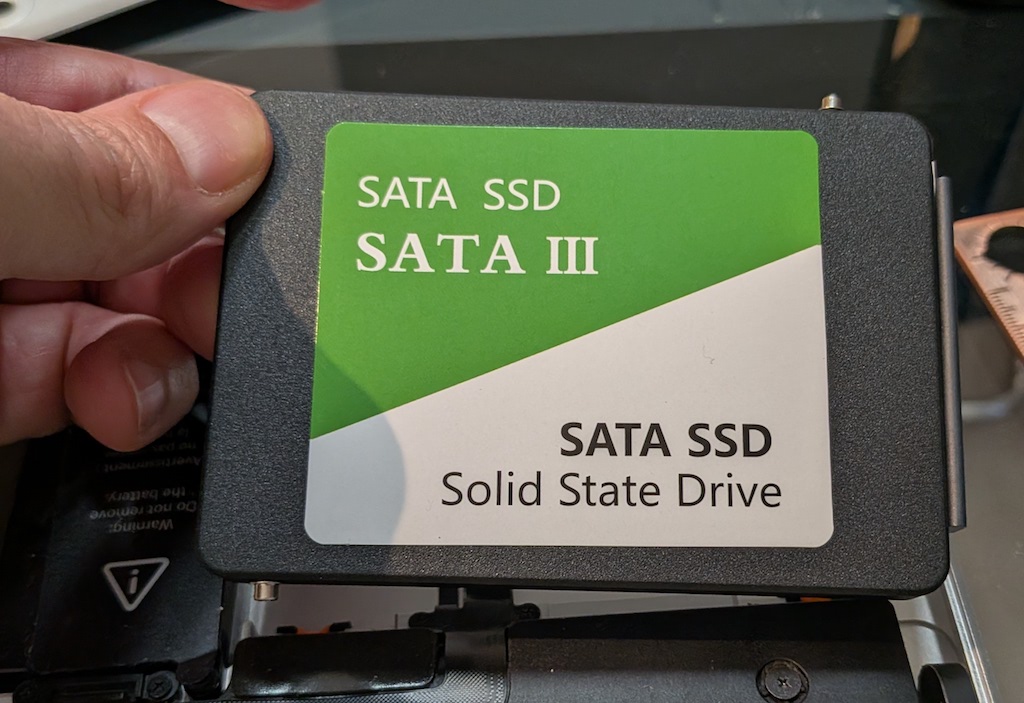 After cleaning and removing all the dust with a air blower and a vacuum cleaner, I put it all together. I decided to upgrade that spending as least as possible, so I went to AliExpress and bought a 15 CAD SDD!
